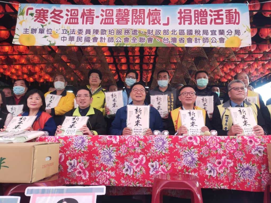 財政部北區國稅局宜蘭分局於1月5日上午於宜蘭市新東社區舉辦「寒冬溫情 溫馨送暖」關懷活動,與陳歐珀立委服務處及台灣省會計師公會、中華民國會計師公會全國聯合會共同合作,以捐贈白米方式,予轄內陽光之友會、一心仁愛協會、歡樂之友會、宜萱婦幼關懷協會、愛加倍關懷協會及弘道老人福利基金會頭城社區照顧服務中心、思源仁愛協會及幸福家園促進協會等8個社福團體,由志工及38個里長提供適切協助,讓其感受到溫暖。