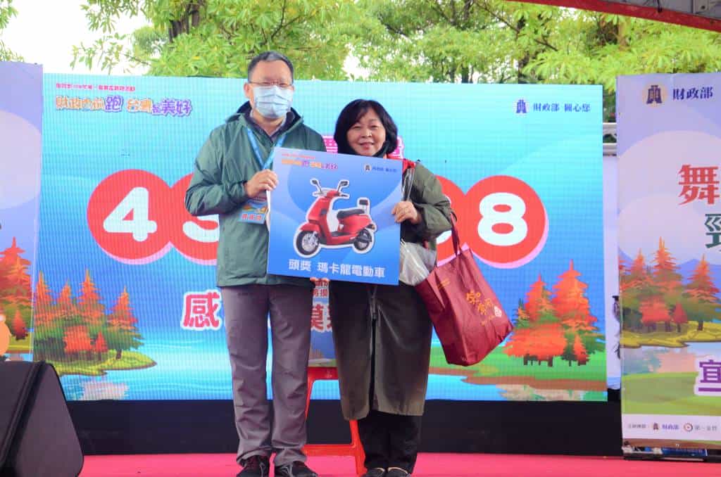 「財政部109年統一發票盃宜蘭場路跑活動」於12月6日(星期日)上午在宜蘭羅東運動公園盛大登場,由財政部蘇部長建榮、宜蘭縣政府林縣長姿妙、第一金控邱董事長月琴及活動代言人-陳宇璿小姐與林雍傑先生等人引領8千餘名民眾共襄盛舉,一起為公益而跑。摸彩活動頭獎為環保電動自行車,由在地林小姐幸運獲得,現場熱鬧非凡,充滿歡笑聲,讓民眾度過了一個活力健康又歡樂的假日時光!