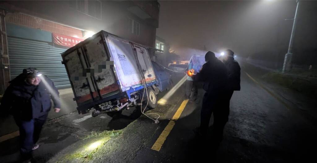 所長柯榮發獲報隨即趕赴現場查看。經評估現場地形及安全狀況後,柯所長委請南山村山地義警詹民協助駕駛操控車輛,由警方及王民在旁合力拉緊繩索穩定車身,避免車輛翻覆,於18時50分許順利將車輛倒車駛出斜坡,成功脫困。