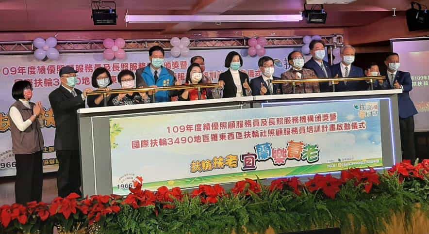 宜蘭縣政府衛生局12月26日於文化局二樓演講廳,辦理「扶輪扶老 宜蘭樂養老」-宜蘭縣109年度績優照顧服務員及長照服務機構頒獎暨國際扶輪社照顧服務員培訓計畫啟動儀式,活動中表揚績優照顧服務員50位及績優長照機構39家。另本次活動亦結合國際扶輪3409羅東西區扶輪社,捐助新臺幣120萬元做為培訓100位弱勢族群照顧服務員之經費。