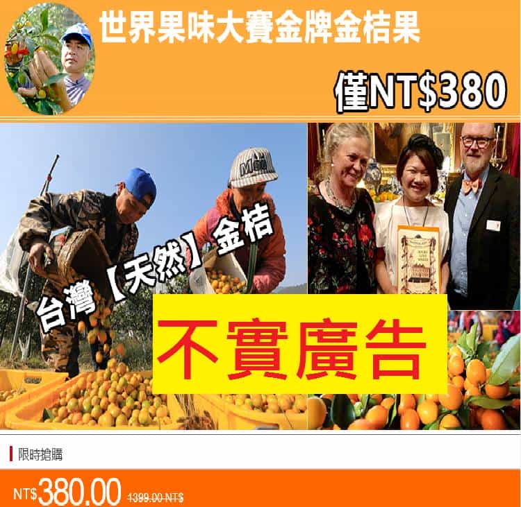 近來網路上流傳「桔之鄉」一頁式廣告,謊稱使用宜蘭市劉先生所種植之有機金桔,甚至引用林姿妙縣長與日本宮崎縣交流的新聞片段,意圖使消費者信以為真。另一則「【血管清道夫】-為愛延續“有機養生黑木耳”」更假冒本縣有機農民身份,用遠高於市價之行情販售有機木耳,嚴重傷害宜蘭縣有機農業形象,宜蘭縣政府籲請民眾切勿受騙上當。
