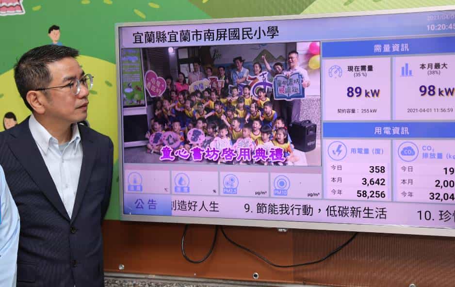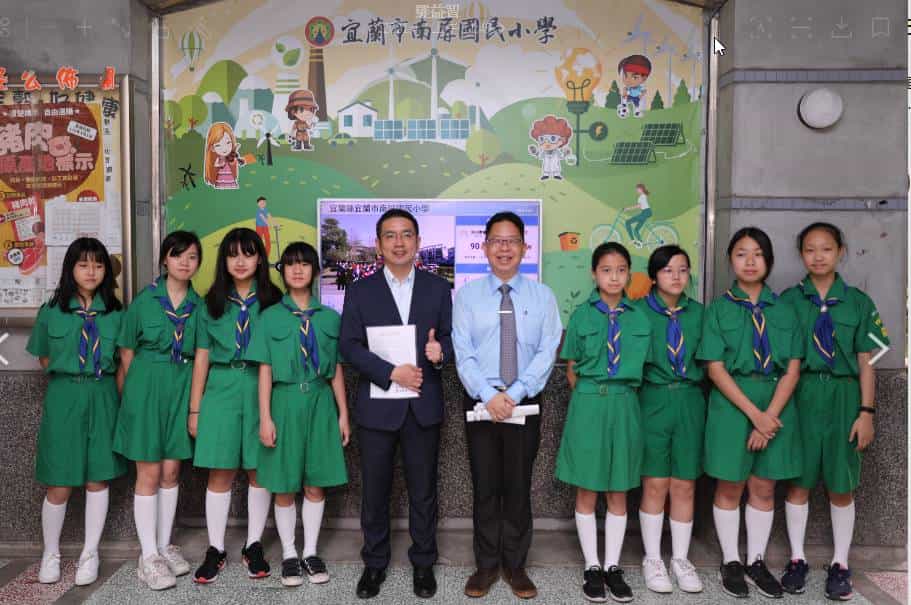 宜蘭市公所超前佈署,去年編列預算補助轄內各國中與國小安裝冷氣,學校使用冷氣的時間點,原則上為每年的4月中旬至11月中旬,因此,眼見已經到了各校冷氣即將使用的季節,宜蘭市長江聰淵今日上午10時特別到南屏國小表揚模範生,同時了解學校冷氣的狀況,並在南屏國小夏明義校長的邀請下,一同參觀學校的能源牆。