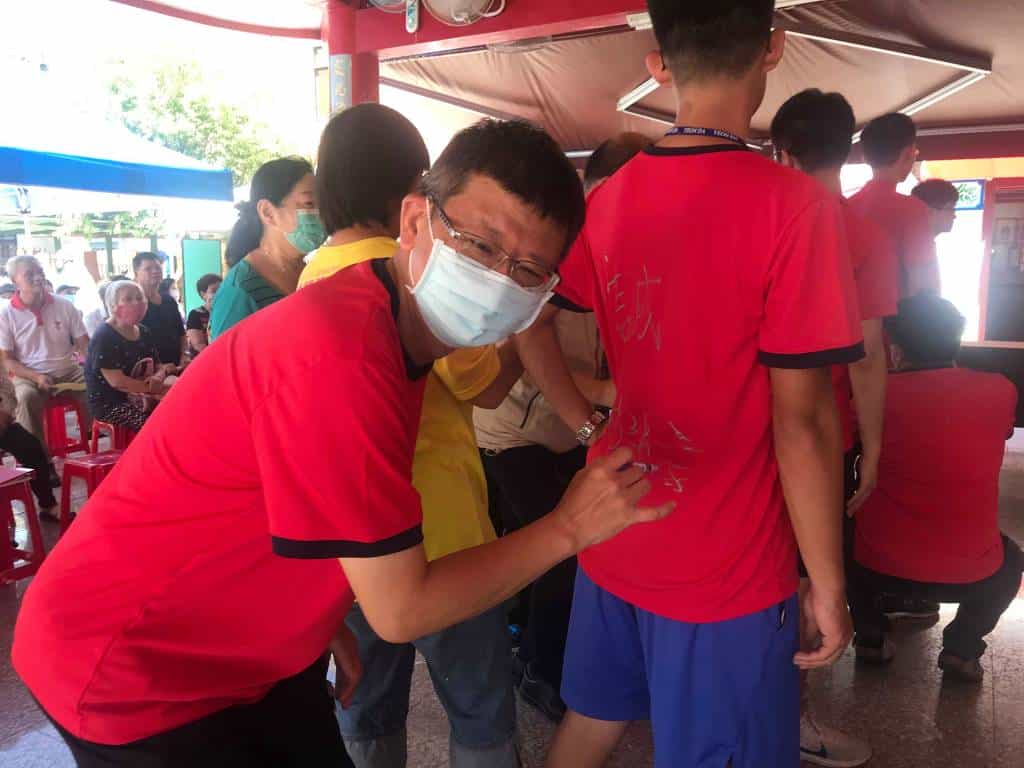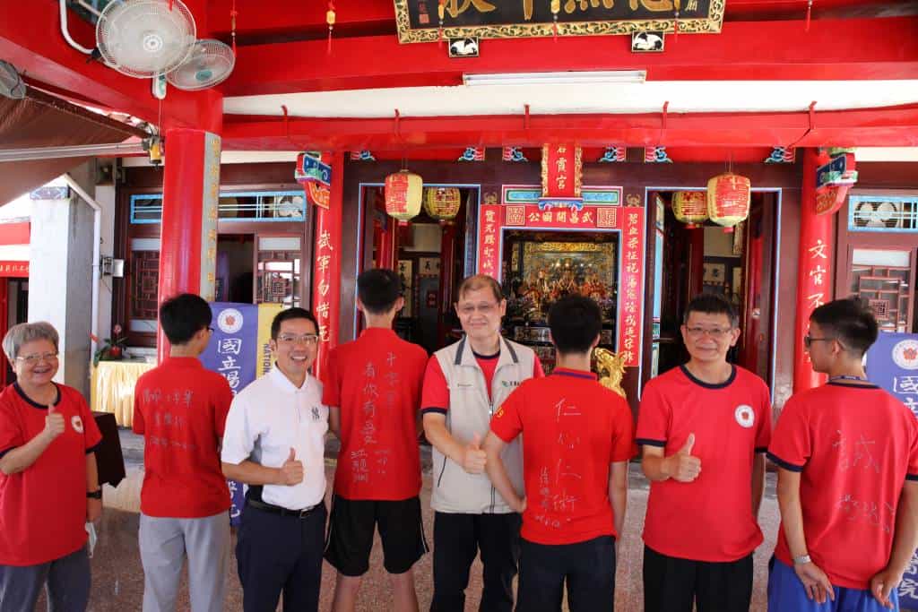 109陽大醫院深耕社區十字軍於8月12日至16日,為期五天,走訪宜蘭市中山里、西門里及北門里,關懷社區銀髮長者的身心健康。 十字軍啟程儀式,以碧霞宮(岳飛廟)為起點,以「岳母刺字」之意喻,由陽大醫院楊純豪院長、宜蘭市市長江聰淵、宜蘭縣政府衛生局局長徐迺維及國立陽明大學周碧瑟教授,在每位隊員隊服背後寫下嘉勉的字句,期許青年華陀能不忘醫者仁心之精神。