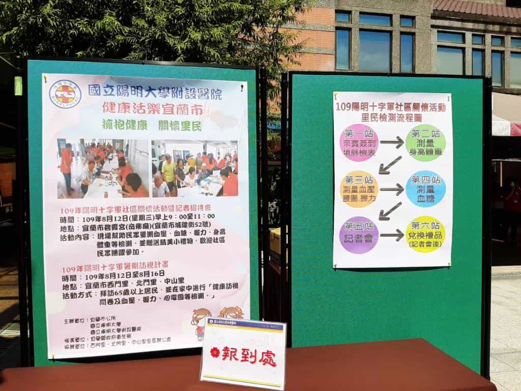 今(12)日邀請各地方首長、機關首長及社區里民們一同參與109年度十字軍啟程儀式,以碧霞宮(岳飛廟)為起點,以「岳母刺字」之意喻,由陽大醫院楊純豪院長、宜蘭市市長江聰淵、宜蘭縣衛生局局長徐迺維及國立陽明大學周碧瑟教授,在每位隊員隊服背後寫下嘉勉的字句,期許青年華陀能不忘醫者仁心之精神;是日同時在碧霞宮外的廟埕,舉行社區關懷活動,活動包含社區里民簡易健康檢測、健康觀念宣導、表演活動及活動紀念品兌換等,邀約咱們在地的好朋友們一同共襄盛舉,推展健康活樂宜蘭。
