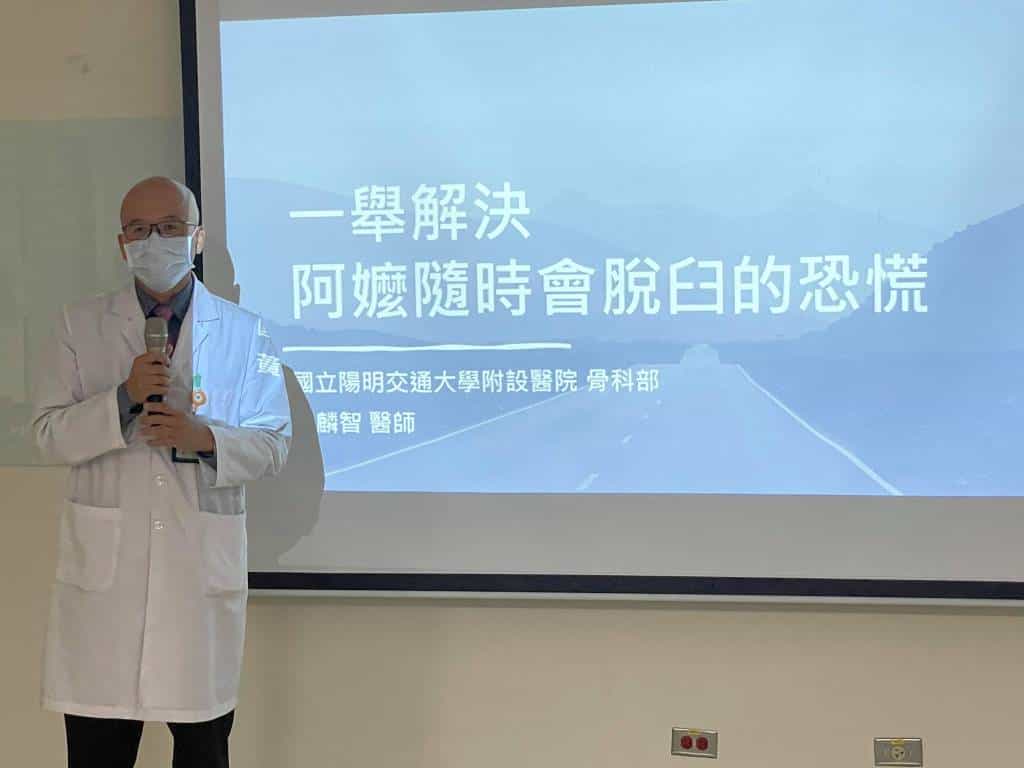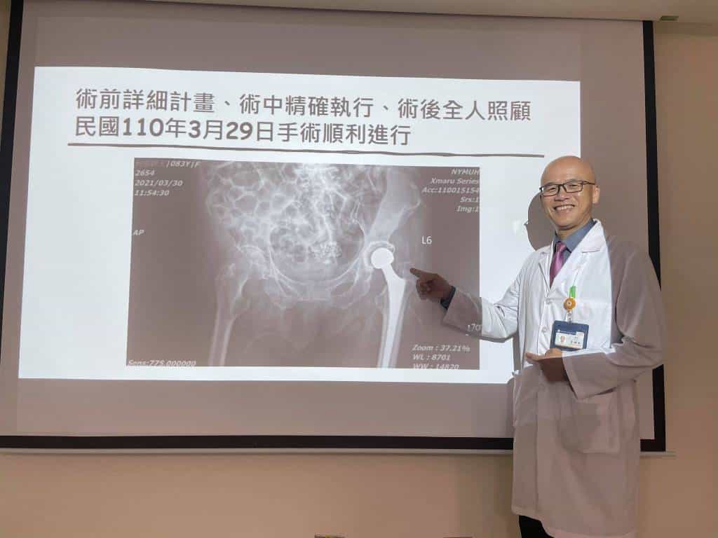 陽明交大醫院骨科蔣毅弘主任說:髖關節是人體最大的關節,也是人類站立或行動最重要的關節,但發生退化性關節炎、類風濕性關節炎、感染性關節炎、股骨頭缺血性壞死、股骨頸骨折等髖關節的病變而無法以保守的方式控制症狀時,人工髖關節置換術即成為有效解決問題的方法,讓關節不再疼痛、不需長期服用止痛藥並及早恢復正常的髖關節功能。何張阿嬤因左側股骨頭缺血性壞死而進行左髖全人工髖關節置換手術,惟習慣農務勞動的阿嬤於術後14年後開始遭遇反覆脫臼,不斷接受復位手術,除疼痛難耐外,並嚴重影響其活動力及生活品質。
