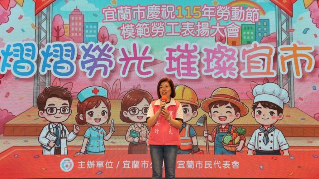 宜蘭市長陳美玲表示,感謝並恭喜今天得獎的模範勞工,獲獎者來自百工百業多元領域,都展現了勞工朋友們崗位上兢兢業業,認真負責的精神。勞工朋友們發出的光芒與熱力是宜蘭市成長的原動力;服務的熱誠、專業上的努力更是大家學習的榜樣。感謝大家在各自崗位持續努力付出不斷精進,讓宜蘭更加幸福!