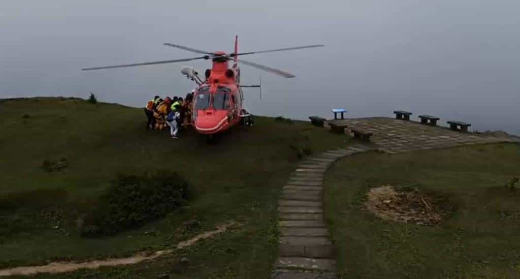 消防局表示,1250時大里消防分隊人員接觸患者並實施CPR,並聯絡空勤直升機1257時自松山機場出發。1340時直升機完成吊掛離開現場,預計將患者後送台北市榮民總醫院就醫。