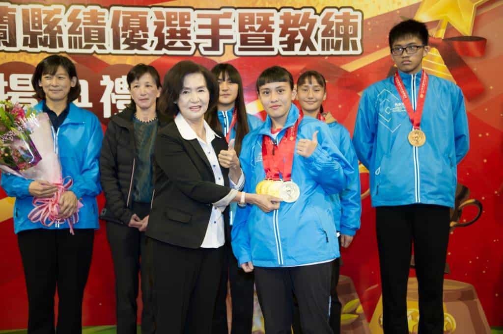 林縣長進一步表示,縣內體育傑出選手之培育根本,最重要是透過學校體育的推動,縣府長期投注訓練經費補助學校及團隊,提供選手完善培育環境,未來會繼續打拚努力、持續充實各項體育設施,把優秀運動選手留在宜蘭,為宜蘭爭取更優秀的成績,繼續努力提升宜蘭縣在國際與全國運動競技水準,也藉由運動選手在各項賽事的相互交流,讓全國選手都有機會認識宜蘭頂尖的運動選手,未來縣府將會持續支持各項運動賽事,讓宜蘭縣成為培養世界一流運動選手的搖籃,繼續為臺灣爭光。