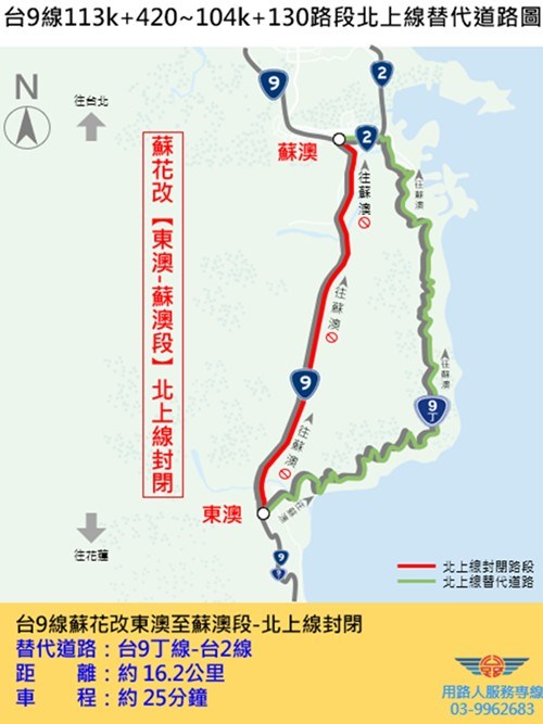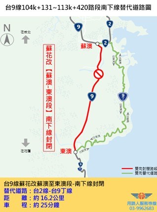 請用路人配合現場交管人員指揮改道通行台9丁線,造成不便尚祈用路人諒察。