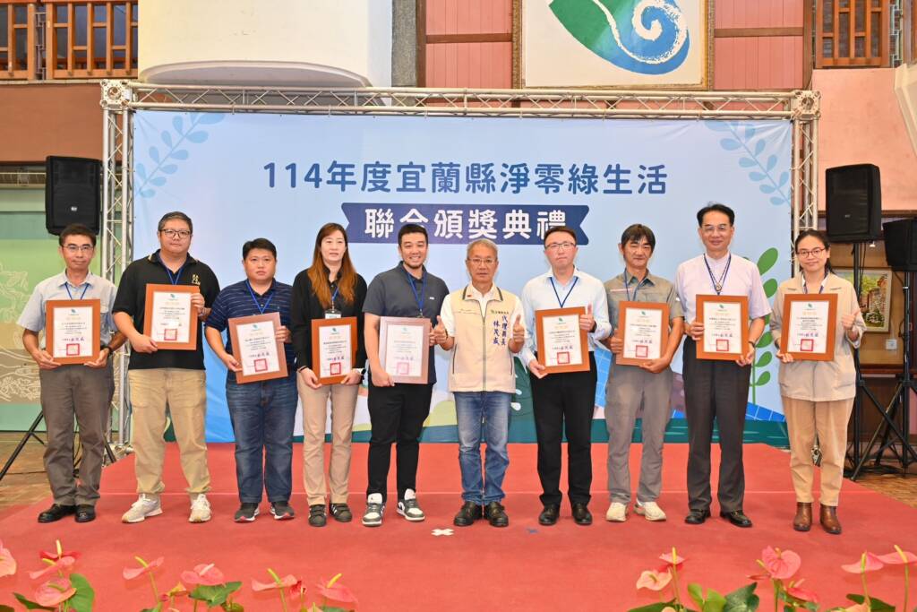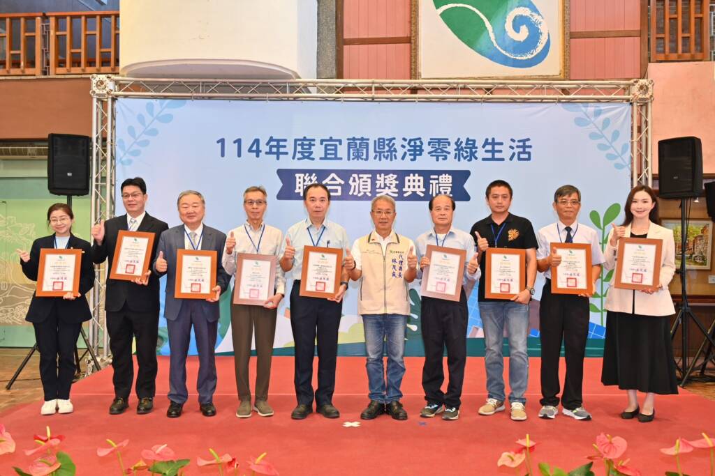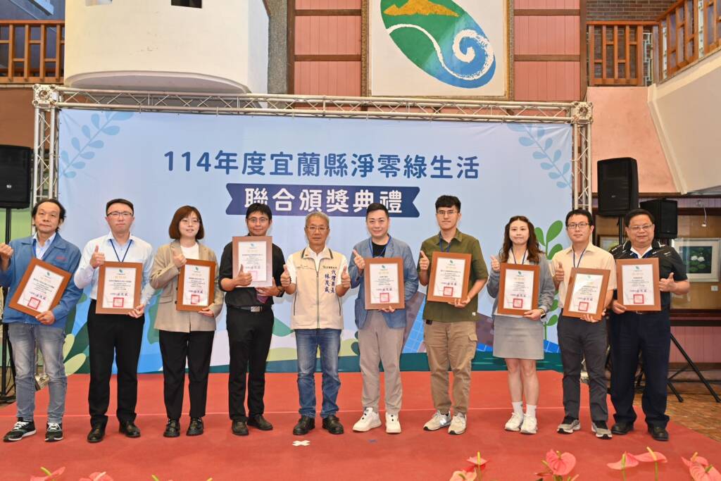 宜蘭縣環保局今(3)日在縣府縣民大廳舉辦「114年宜蘭縣淨零綠生活聯合頒獎典禮」,頒發獎項包括環境教育繪本創作比賽、第十屆宜蘭縣環境教育獎、第七屆國家企業環保獎、綠色採購申報1,000萬以上績優單位、綠色採購申報100萬以上績優單位、空氣品質淨化區優良認養單位以及環保低碳寺廟認證單位等7個獎項,涵蓋面向廣泛,充分展現環保行動在教育、企業、社區與文化層面的落實。