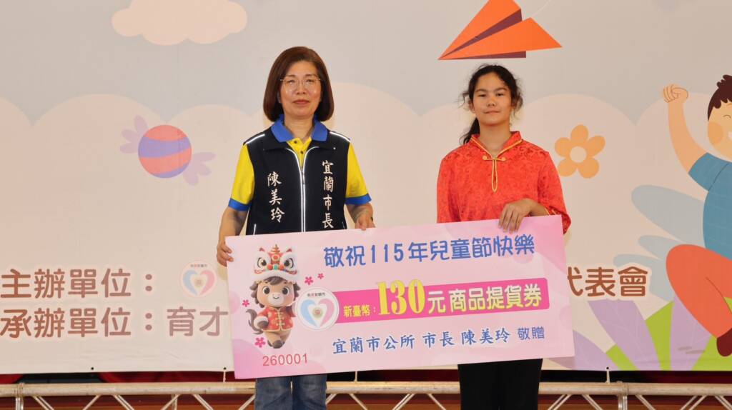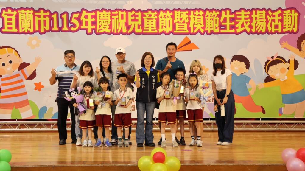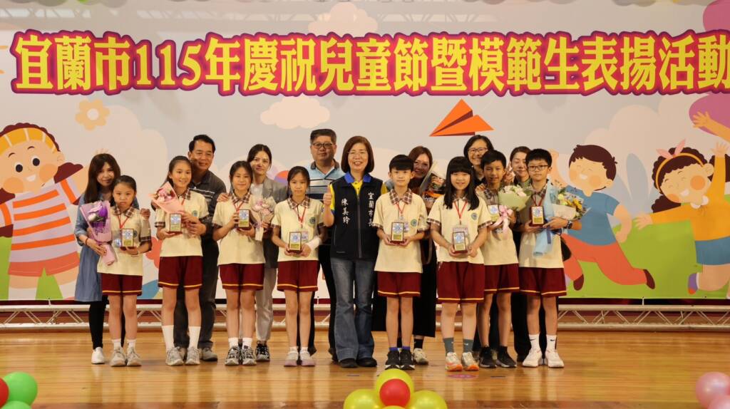 為歡慶四月兒童節,宜蘭市公所在今(1)日下午230分,於宜蘭運動公園體育館盛大舉行「115年宜蘭市慶祝兒童節暨模範生表揚」活動。宜蘭市長陳美玲親自出席,為全市9所國小共280位模範生頒發「專屬客製化獎座」,更同步宣布發放全市國小及幼兒園學童面額130元的「兒童節圖書禮券」,期盼透過這份書香好禮,為全蘭城的小朋友們厚植閱讀與探索世界的基礎能量。