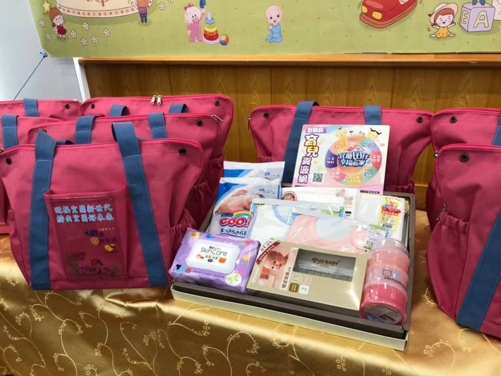 幸福親子包,包內裝有奶瓶、奶粉分裝罐、毛巾、濕紙巾、圍兜兜等嬰兒所需用品,提醒新手爸媽外出應準備哪些用品,讓小寶貝外出時不怕漏東漏西。幸福親子包除了提醒新手爸媽外出應準備哪些用品外,也可分擔家庭照顧的壓力,更可以提升嬰兒照顧的品質。