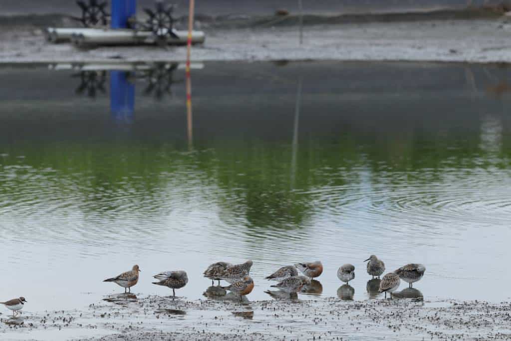 「30天」,對你、我來說不過是一個時間概念,但是對於春季從澳洲北返西伯利亞的候鳥們,卻可能是生與死的差別。為了拯救近年快速減少的東亞澳洲遷徙線上的候鳥們,林務局羅東林區管理處與社團法人宜蘭縣生態農業發展協會合作在宜蘭縣五結鄉季新、錦眾的養殖魚塭嘗試推動「友善水鳥計畫」,今年成功與4位養殖戶,面積2.6公頃合作,從4月1日至30日為止,鼓勵合作養殖戶延長曬池時間至30天,並維持泥灘地的面積,讓恰好在此時過境的稀有、國際瀕危的鷸鴴科候鳥們(如:大濱鷸、紅腹濱鷸等)除了蘭陽溪口外,有更多的覓食與休憩泥灘地,讓他們有足夠的體力飛往下一站。