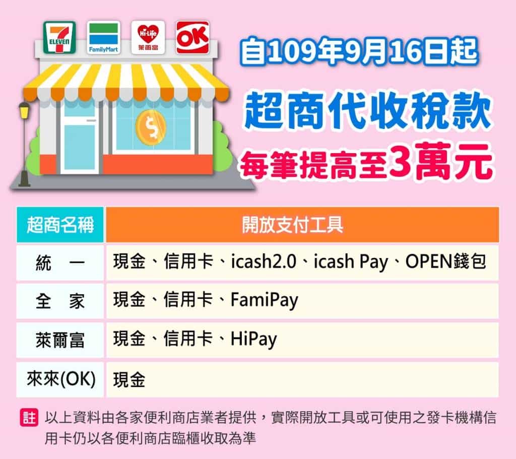 該局表示,為方便納稅義務人繳納稅款,近年亦不斷精進各項繳納方式,包括可在便利商店的多媒體機(KIOSK)補印稅款繳納單、繳納限額提高至3萬元以下,並開放「實體信用卡」、「行動支付」及「電子票證」等非現金支付工具繳納稅款。網路的部分則可用行動裝置掃描繳款書上QRcode進行網路繳稅,或下載已開辦繳稅服務行動支付APP繳稅;未收到稅單的納稅人,還可使用自然人憑證、健保卡或行動憑證TW FidO等至地方稅網路申報作業網站(網址:https://net.tax.nat.gov.tw)線上查繳稅。