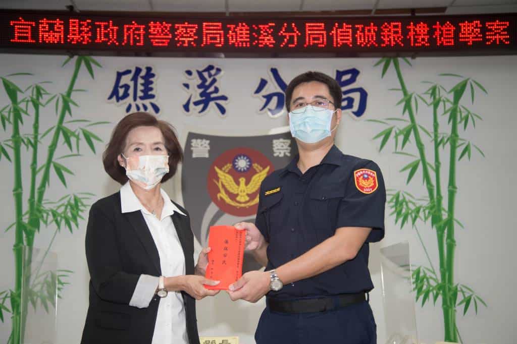 【北台灣新聞中心】 日前礁溪發生槍擊搶案,林姿妙縣長責成警察局迅速破案並立即啟動肅槍專案,刑警大隊及礁溪分局不眠不休、積極緝兇,在16小時內迅速逮捕嫌犯,林縣長特別前往礁溪分局致贈10萬元破案獎金,感 …